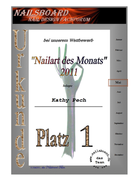 - Knight of Nails ( Teilnehmer mit der höchsten Punktzahl der gesamten Meisterschaft) der Nail Noblesse in Kalkar